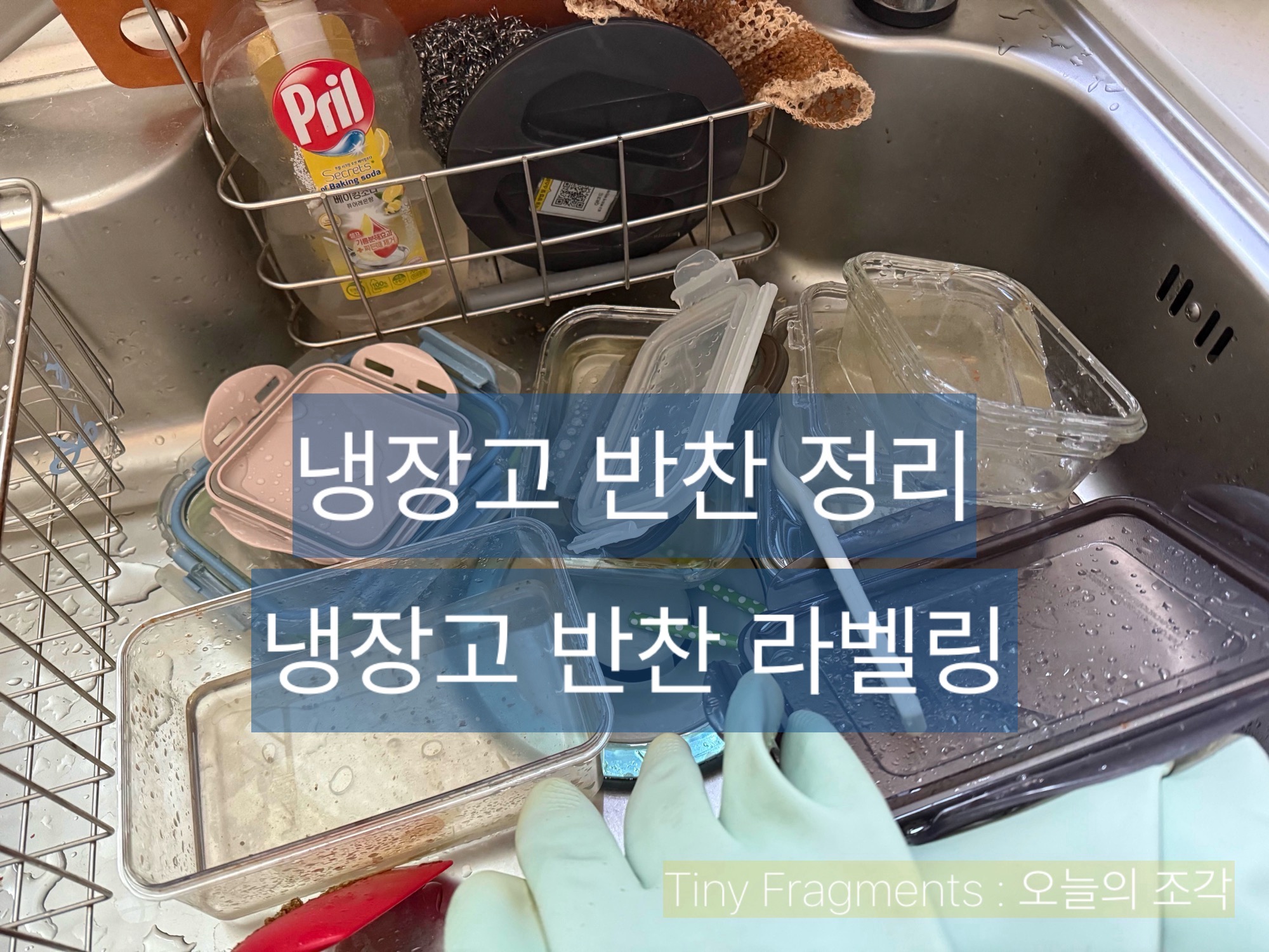 반찬들 보관일자/유통기한 등을 라벨링 했습니다.