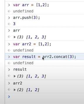 그래서 나중에 사용할 때에 push의 경우에는 문제가 생길 수 있어 concat을 더 선호